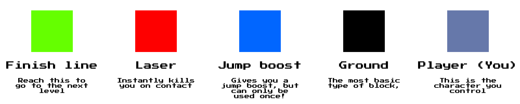 You can control the player using both WASD and the arrow keys. You can also use space to jump. Press R to reset the game and wipe the memory, or press the reset button here or on the home page.